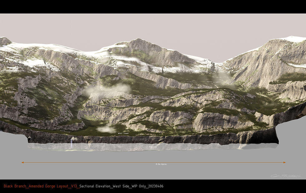 Concept & design development: full layout study of the gorge topography (3D Sculpt) as per narrative.